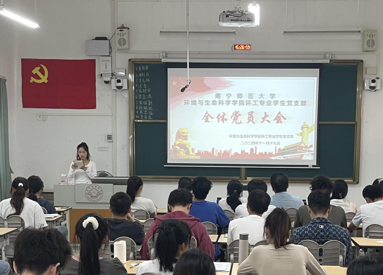 为进一步做好党员发展工作,加强党员队伍建设,落实环工专业学生党支部发展党员工作计划,增强党组织的凝聚力、战斗力和影响力,必赢766net手机版环工专业学生党支部于2024年11月19日下午在武鸣校区1号教学楼120教室召开全体党员大会。会议主要议题是讨论吴丹苗等10名预备党员转为正式党员的问题,参会人员有必赢766net手机版环工专业学生党支部书记曲炳鹏以及支部全体党员。