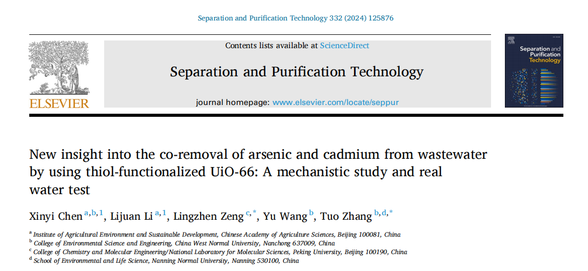 近日,我校必赢766net手机版张拓副教授分别与北京大学、新疆农业大学、中国农业科学院和湖南省农业科学院合作在工程技术/化工领域著名期刊《Separation and Purification Technology》(中科院1区TOP,JCR1区,IF2023=8.1),综合类领域期刊《Scientific Report》(中科院2区,JCR1区,IF2023=3.8)、农业综合领域期刊《AgricultureBasel》(中科院2区,JCR 1区,IF2023=3.3)、土壤学领域期刊《Journal of Soil Science and Plant Nutrition》(中科院3区,JCR1区,IF2023=3.4)发表了题为《New insight into the co-removal of arsenic andcadmium from wastewater by using thiol-functionalized UiO-66: A mechanistic study and real water test》、《Influence and Mechanism Study of Soil Moisture on the Stability of Arsenic-Bearing Ferrihydrite in Surface Soil Vertical Profiles》、《Effective co-immobilization of arsenic and cadmium in contaminated soil by sepiolite-modified nano-zero-valent iron and its impact on the soil bacterial community》、《Evolution of red soil fertility and response of rice yield under long-term fertilization》的4篇高水平研究论文。上述文章深度探究了新型环境功能材料UiO-66-SH、海泡石负载纳米零价铁S-nZVI和纳米水铁矿在水体和土壤环境中对砷和镉两种重金属的同步钝化过程机制和重金属污染在土壤长期耕作条件下潜在的迁移释放过程机制。张拓副教授为上述4篇论文的通讯作者,南宁师范大学为第一或主通讯单位。上述多项研究工作得到了国家自然科学基金、国家重点研发计划课题、四川省自然科学基金和中央级科研院所基本科研业务费的支持。
