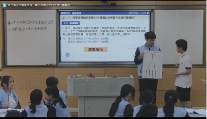 本次见习活动依托希沃、南宁市三个课堂平台进行线上课例和专题讲座,实现了跨空间观摩教学、评课、议课同步进行。南宁市第三十六中学覃丽芳教师展示了人教版必修2《基因和染色体》单元复习课。覃老师将地中海贫血“一境到底”,使学生达成了知识结构化,培养了学生的核心素养。此外,梧州市第十八中学黄灿超教师展示了浙科版必修2《通过DNA复制传递遗传信息》新授课。黄老师引导学生依据假说演绎法进行合作探究并互评学习成果,培养了学生的批判性思维能力。南宁市教科所曾哲教师做了题为《“一标三优四融”构建“教学评”一体化--以减数分裂的建模教学为例》的讲座,分享了构建高中生物学“教学评”一体化的理论框架和构建单元复习“教学评”一体化的策略。梧州市教科所邓楠教师做了题为《基于教学评一体化理念下问题驱动式课堂教学策略探讨》的讲座,分享了教学评一体化三问:为什么、是什么、如何实现。