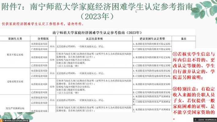 为认真做好2023年度家庭经济困难生的认定工作,切实做好国家资助政策的宣传工作,让我院学子更加全面和深入了解国家资助政策,营造关心帮助家庭经济困难学生的浓厚氛围,2023年9月13日晚22:00,必赢766net手机版采用线上的形式召开了经济困难生认定政策宣传解读专题会议。