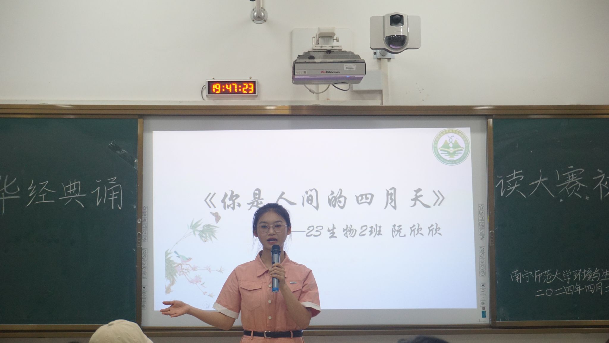 比赛当天,本学院学子汇聚一堂,她们或深情款款、或激昂澎湃,通过声情并茂的朗诵,将一首首古今中华经典诗文和各地富有人文特色的名人名作赋予了新的生命力。选手们的一字一句,饱含情感地诠释着文字背后的深远意境,让优美的文段焕发出别样光彩。