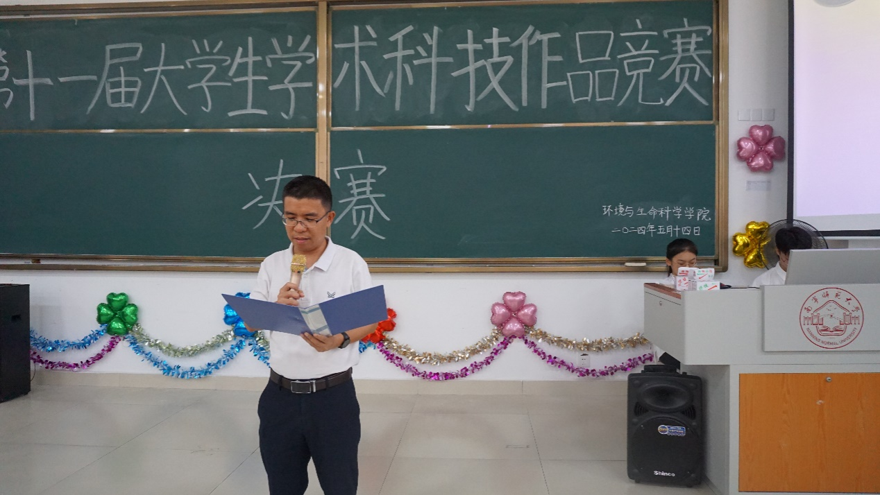 王卫彬老师为本次大赛致辞。他指出学术科技是推动社会进步的重要力量。新时代的大学生应肩负推动学术科技发展、服务国家社会的重任,不断提升自身的学术水平和科技创新能力。