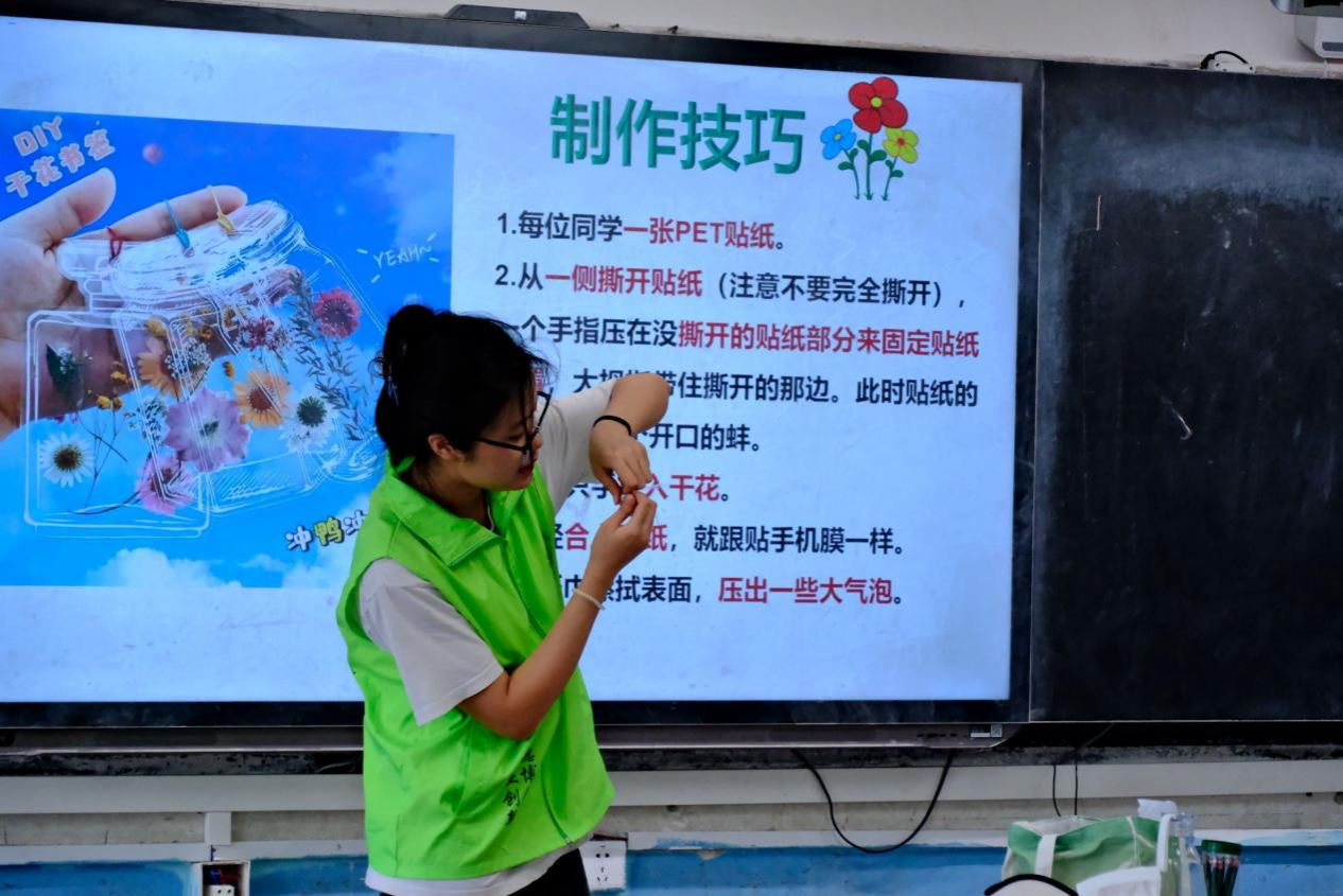 “环保工艺品手工制作”小课堂上,成员们教小朋友们利用塑料瓶、废纸皮等材料进行手工制作,将原本可能成为垃圾的物品变成了有用的艺术品。小朋友们在这个过程中,不仅开发了想象力,锻炼了动手能力和创造力,更让他们深刻体会到了“变废为宝”的乐趣和意义,树立了生态环保、循环利用的意识。