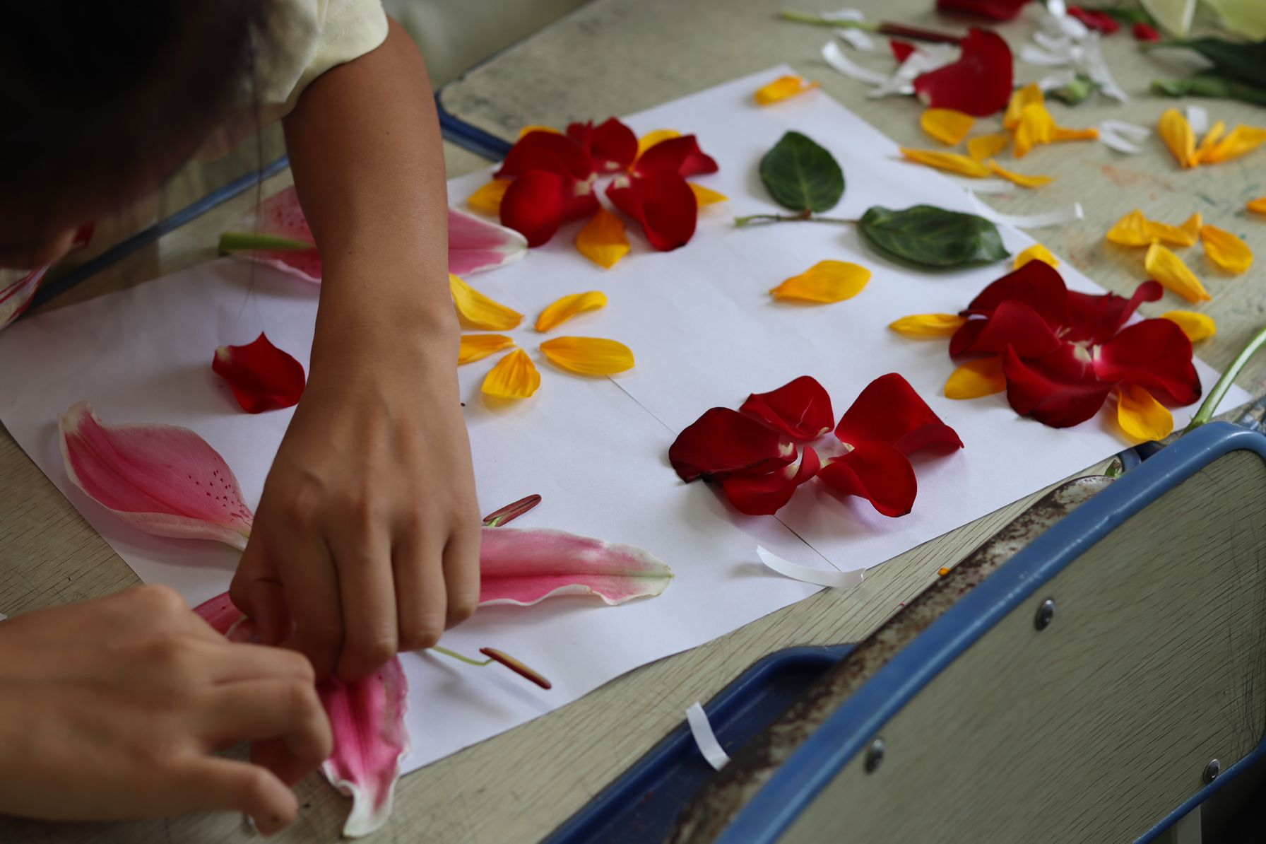 此次支教系列活动由六个课堂构成。“植物结构解剖实验”课堂上,成员们带领小朋友认识了生活中常见的花的种类,手把手教他们解剖了百合花的结构,并发放了百合、玫瑰、向日葵等材料,让小朋友制作趣味手工花画,寓教于乐,在动手操作的同时获得了生活中的植物常识。在制作花画的过程中,小朋友们发挥自己的想象力,制作出许多很有个性的作品。