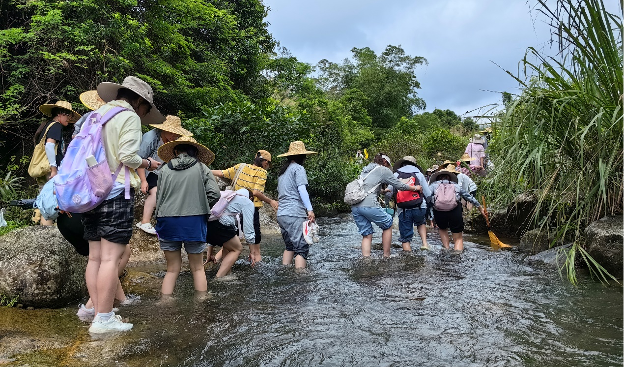 7月9日早上,师生们抵达北仑河源头景区。同学们分为湿地动物组和昆虫组两个大组,对北仑河源头的动物分布及特征展开调查。湿地动物组携带鱼竿、捕鱼网、抄网等工具,捕捞溪流中的鱼类;昆虫组带着酒精、捕虫网等工具对山间各类昆虫进行捕捉,每组都收获颇丰。