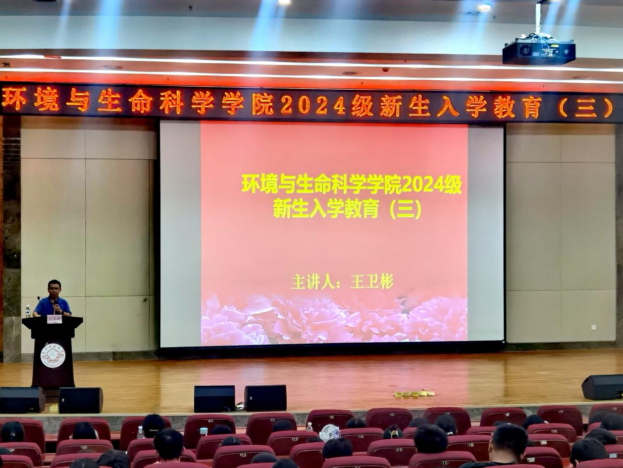 为了让新生们更好地适应大学生活,帮助他们更好地了解大学生职业生涯规划的重要性,环境与生命科学学——必赢766net手机版顺利开展新生入学教育第三讲院于9月18日晚在武鸣校区图书馆报告厅举办了2024级新生入学教育系列讲座第三讲。本次讲座由学院党委副书记王卫彬主讲。