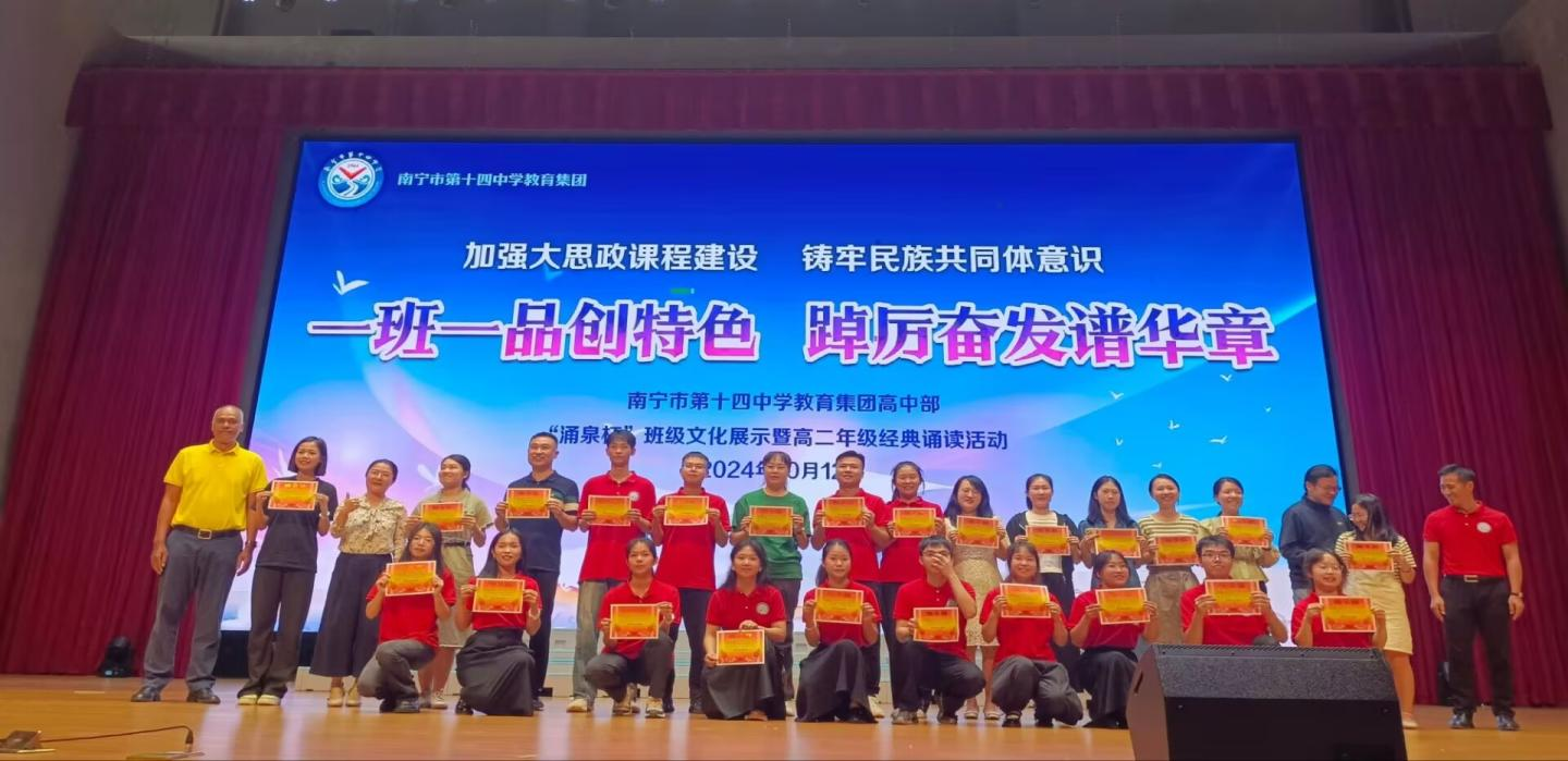 10月12日,高二年级进行了以“一班一品创特色,踔厉奋发谱华章”为主题的经典诵读活动,旨在展示班级文化,加大思政课程建设,铸牢中华民族共同体意识。在此次活动中,实习生们组织学生们排练节目,积极参与晚会的准备事宜,与学生有了更深的交流与了解,并圆满完成了此次活动。