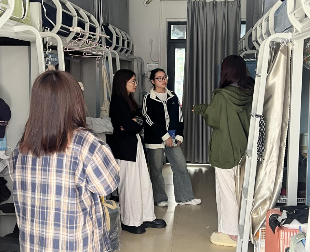 在走访过程中,老师们与同学进行了面对面的交谈,细致地了解了大家的学习进展、日常生活状况以及他们目前面临的困难和需求,并耐心给予了解答和回应。在走访毕业班同学宿舍时,老师们对备考研究生和公务员考试的同学表达了关心和慰问,为大家提供了一些复习建议和心理支持,帮助他们减轻压力,增强信心。对于没有考研或考公计划的学生,老师们鼓励毕业生积极投身就业市场,积极应骋,并认真撰写毕业论文。