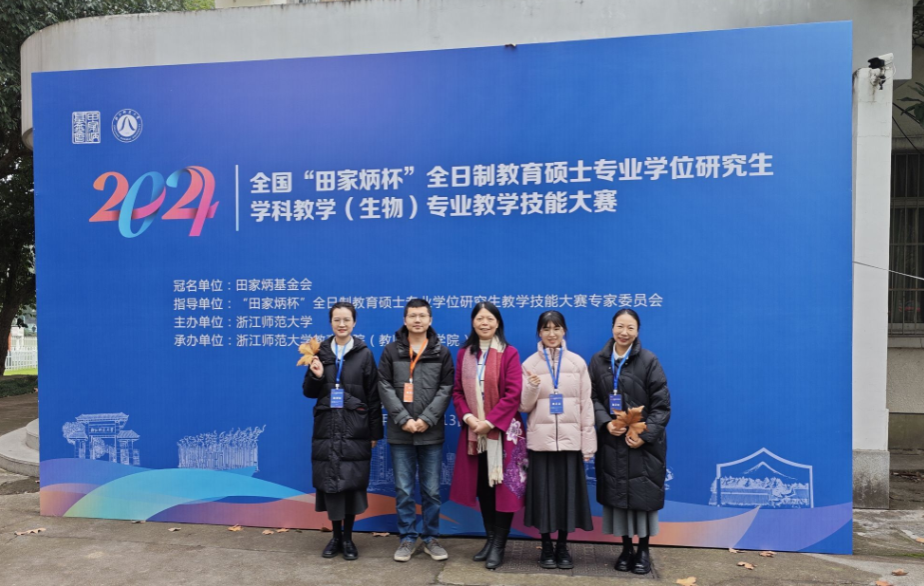 12月11日至13日,2024年全国“田家炳杯”全日制教育硕士专业学位研究生学科教学(生物)专业教学技能大赛决赛在浙江师范大学举办。必赢766net手机版院长何英姿教授带队参加了比赛。我校学科教学(生物)专业共3名研究生入围决赛,其中龚赛帅获得二等奖,卢丽娟获得三等奖,韦品翠获得优秀教学设计奖。杨剑老师获得优秀指导教师奖。