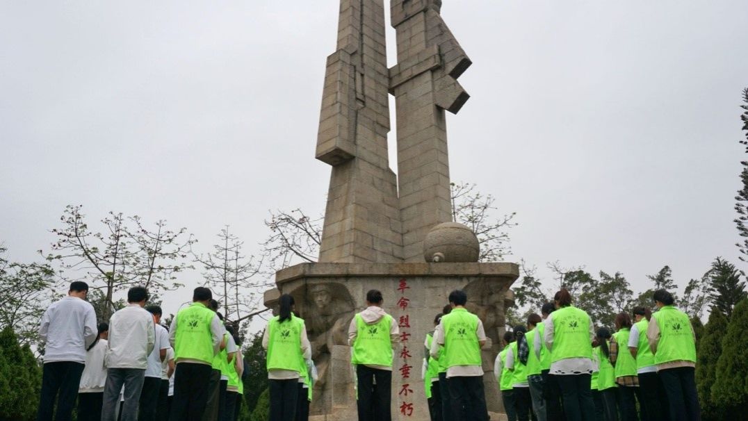 随后,志愿者们在烈士纪念碑前列队肃立,为革命先烈默哀三分钟,表达深切悼念。默哀结束后,大家依次献上鲜花,表达对先烈的敬意与缅怀。