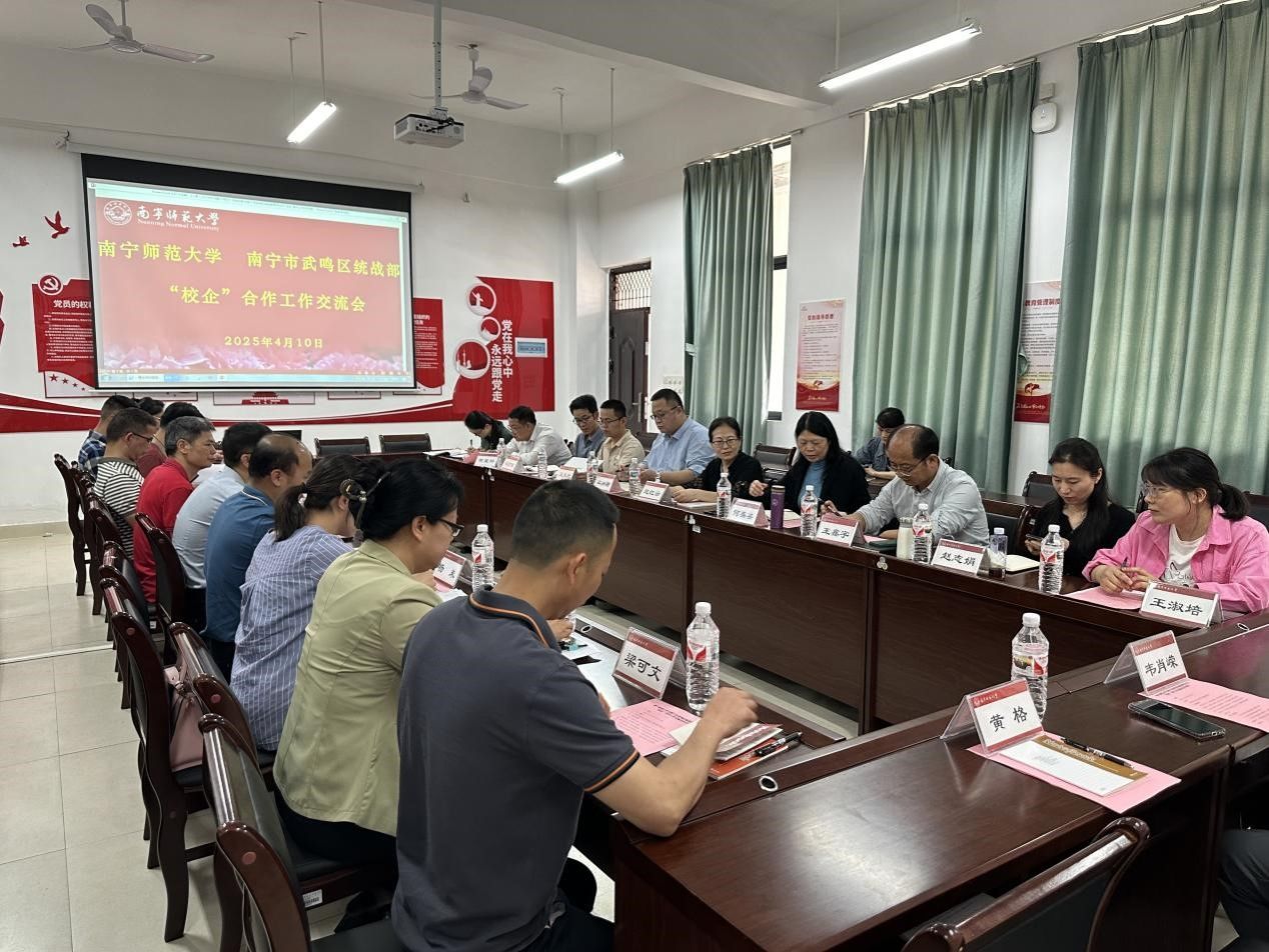 4月10日下午,我校联合武鸣区委统战部召开校企合作项目交流会。我校党委统战部、必赢766net手机版的领导和教师代表出席会议。参加本次会议的还有南宁教育园区东片区建设指挥部、武鸣区农业农村局、科技局、工商联等5个单位及5家民营企业代表。