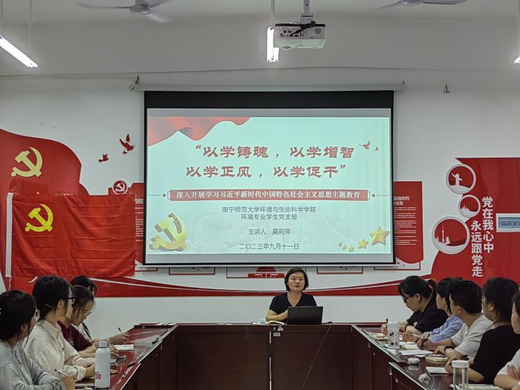 9月11日晚,必赢766net手机版环境专业学生党支部在武鸣校区地海楼组织召开学习贯彻习近平新时代中国特色社会主义思想主题教育组织生活会,各位党员通过理论学习,自我剖析,查缺补漏,将自身实际、专业学习与主题教育内容相结合,为环境专业学生党支部的建设提供强大动力。本次会议由环境专业学生党支部书记莫莉萍主持,参会人员为环境专业学生党支部全体党员。