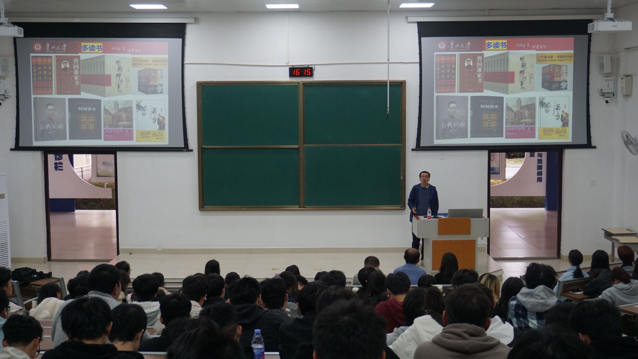 刘宝军教授2009年在我校本科毕业后,先后在西安科技大学、大连理工大学获得硕士和博士学位,在香港理工大学从事博士后研究,目前是贵州大学一流学科特聘教授(A岗),博士生导师。他一直践行着勤奋好学的拼搏精神,他的人生理念,“做什么事情都不要紧,但要把热爱的事情做到极致”。刘教授以自己的求学和研究之路为案例,传授了如何紧密对接国家重大需求设计研究课题的经验,分享了带大学生参加大创、互联网+和红色专旅的获奖经验,给老师和同学们带来许多启发与思考。刘宝军教授幽默风趣、热情洋溢的讲座,赢得了师生们的阵阵掌声。